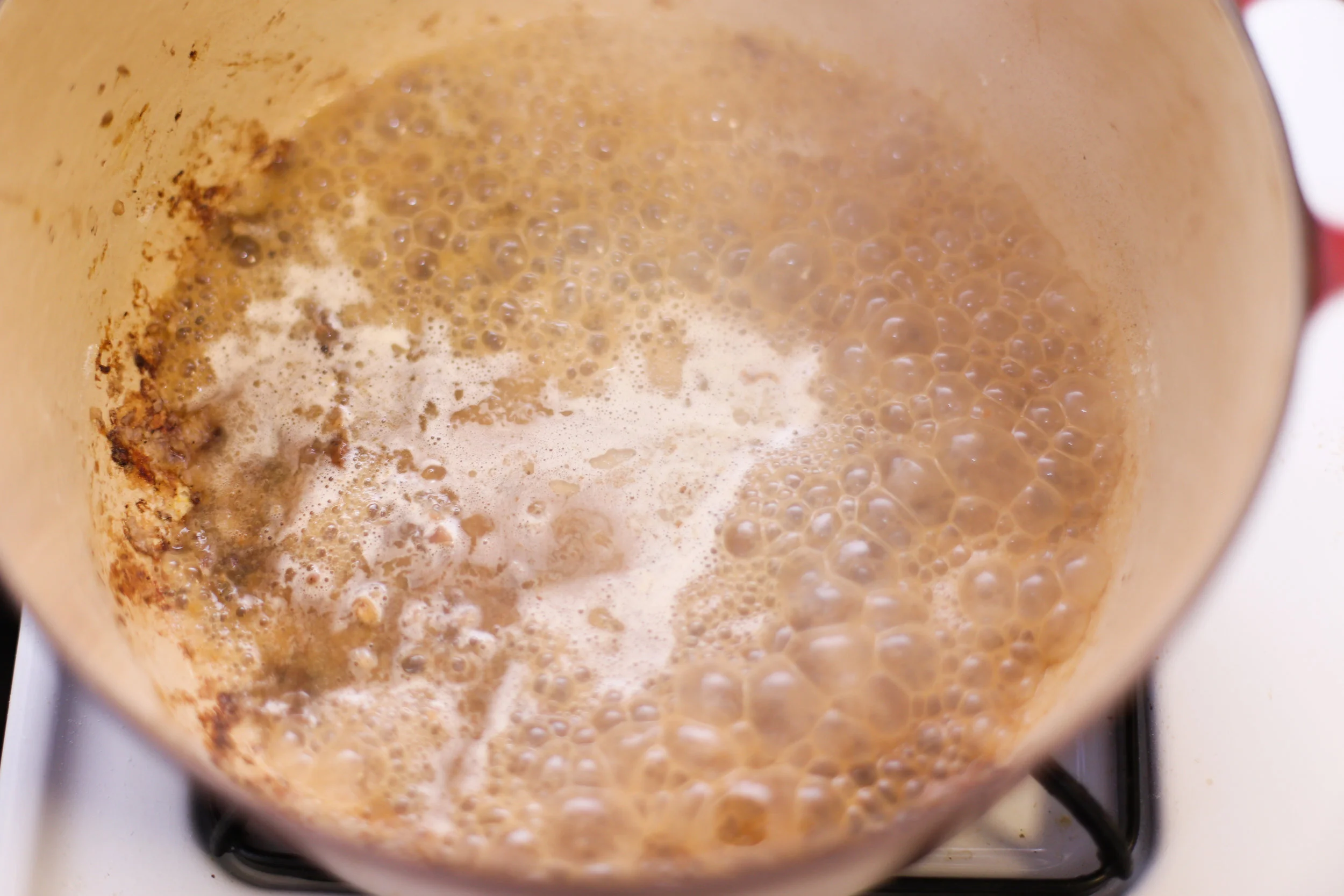 Set the meat aside and deglaze the pan with a splash of beef broth - it should steam and bubble, Use a wooden spoon to scrape up the bits